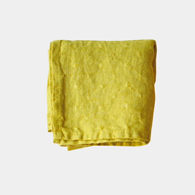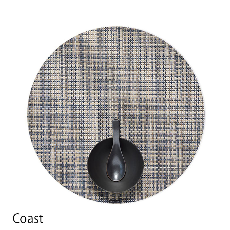 シンプルな中にも色が入ったテーブルマットを使い、カタチも四角と円形を組み合わせてリズミカルに。