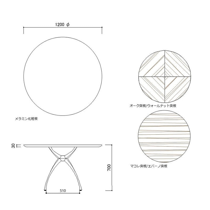 天板=メラミン化粧板(ホワイト) /オクメ突板(鏡面)/エバーノ突板(鏡面)/オーク突板(ツヤ消・チャンネル貼)/ウォールナット突板(ツヤ消・チャンネル貼)