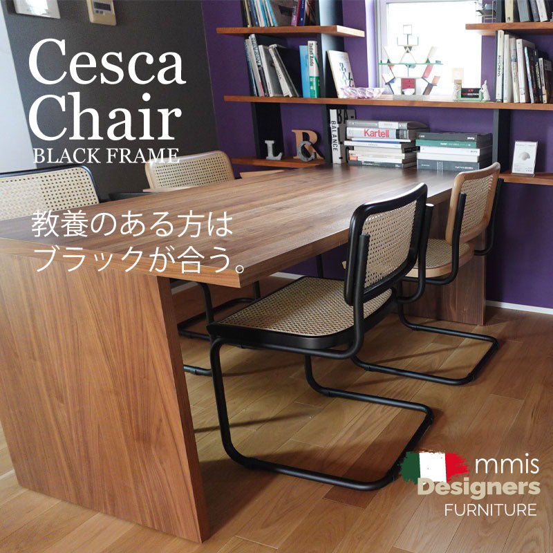 チェスカチェアブラック イタリア製 ダイニングチェア ラタンチェア 直輸入 アーム無し パイプカラー:ブラック フレームカラー:ブラック / ナチュラル マルセルブロイヤー