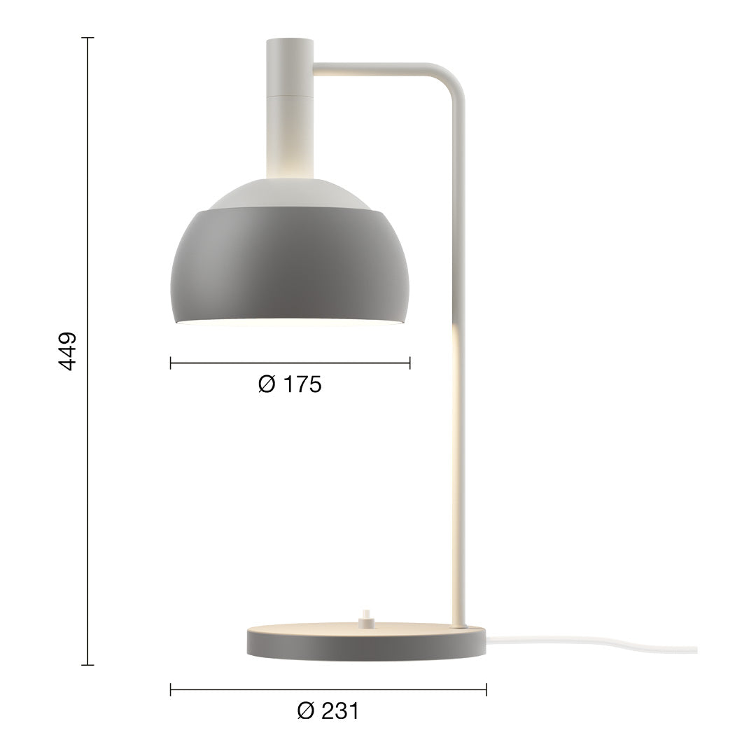 FJ Elements(エレメンツ)テーブルランプは下方に向けた光を特徴とし、快適なグレアフリーの照明を提供するディフューザーを備えています。ローワーシェードの周りでアッパーシェードを回転させ、光の方向を調整できます。さらに、アッパーシェードとハウジングの間の開口部から、控えめな上向きの光が放たれます。