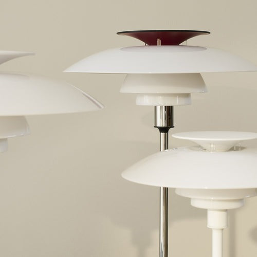 PH 80には、もともとテーブルランプとフロアランプがあり、デンマークを代表するデザイナーのひとりで、特に照明器具のデザインで高く評価されたポール・ヘニングセンへのオマージュとして製作され、ヘニングセンの没後、彼の80歳の誕生日を記念して1974年に発表されました。 オリジナルのPH 80はヘニングセンの有名な「PHシリーズ」の一部であり、複数のシェードによってグレアのない照明を生みだす、彼のデザイン原理を継承しています。機能性と美しさを兼ね備えるPH 80 テーブルランプは暖かみのある拡散光を発し、住宅と建築施設の両方の環境で活躍します。